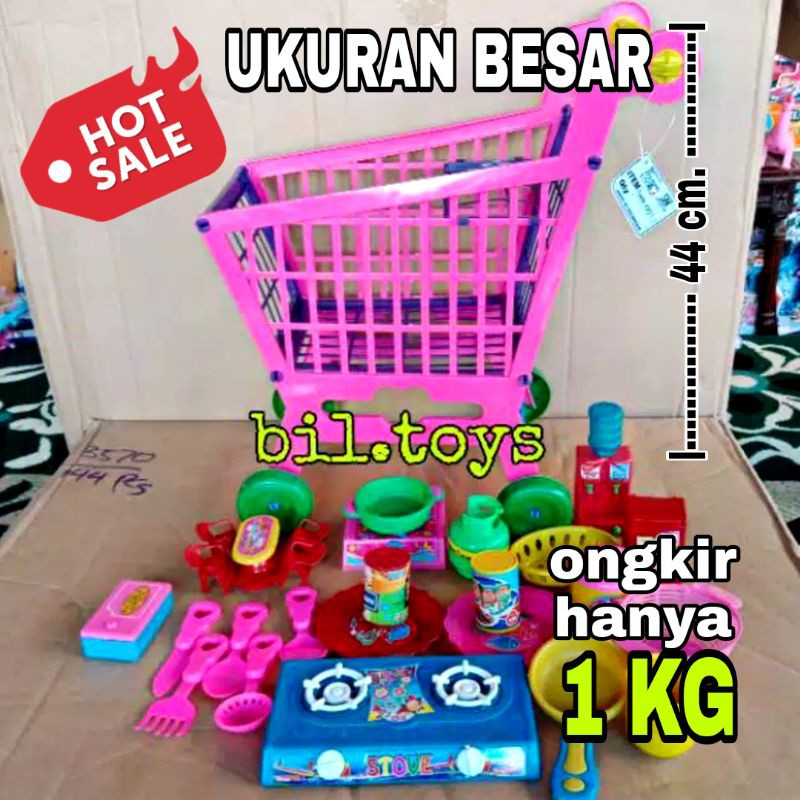 MAINAN ANAK PEREMPUAN MAINAN TROLI BELANJA MAINAN ANAK TROLLEY STROLLER KERANJANG MASAK MASAKAN BESAR