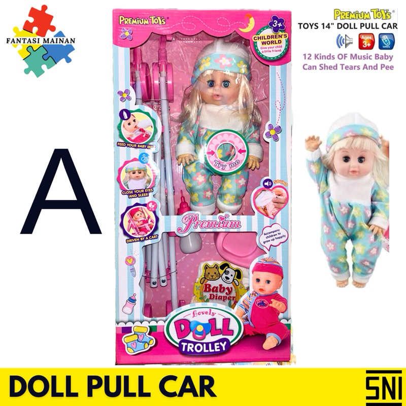 Baby Doll Stroller Mainan bayi dorong Boneka bayi dorong Bayi Menangis , Minum , Pipis - Kemasan dus , Kado anak perempu