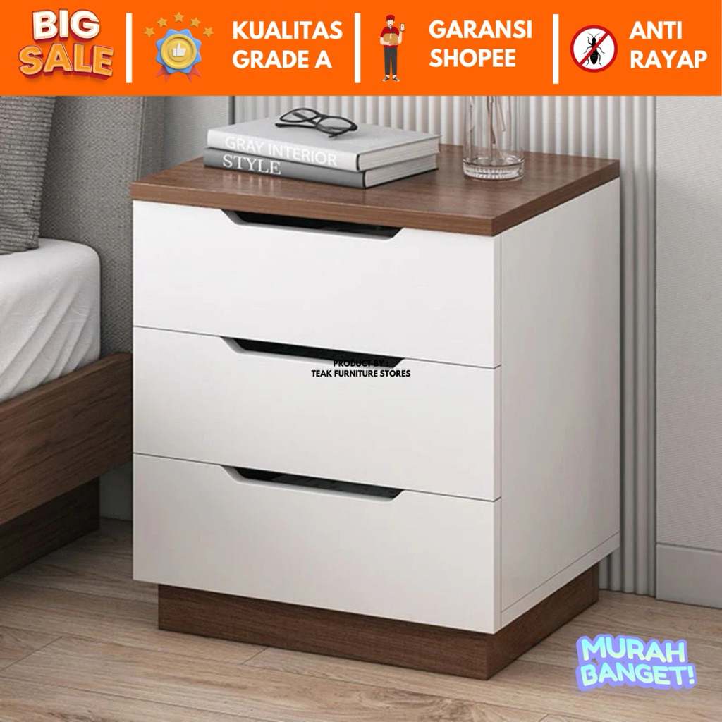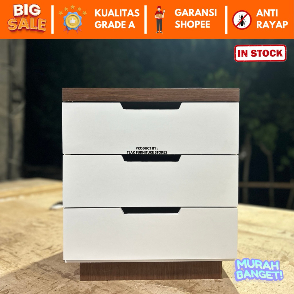 Delsaf Meja Nakas Minimalis bedside Nighstand 3 Laci Murah