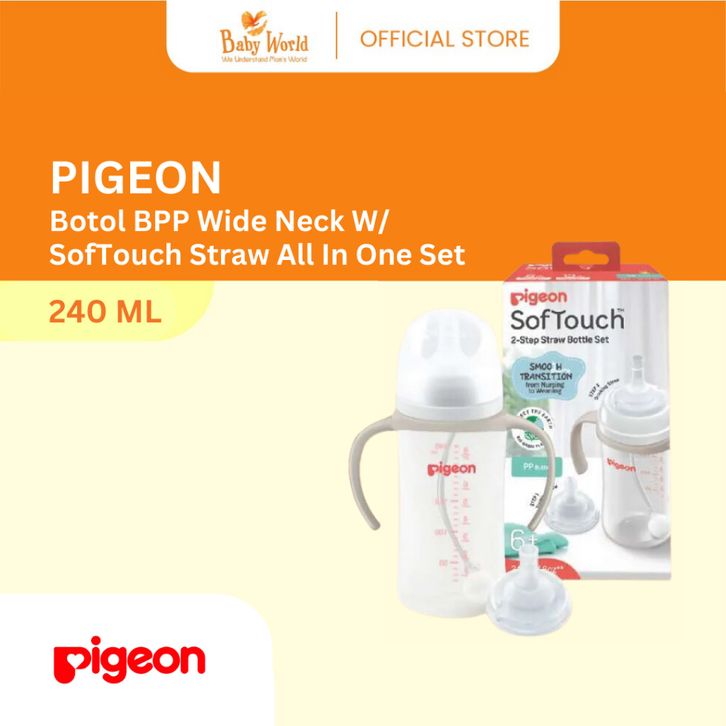 Pigeon Botol BPP Wide Neck 240 W/Softouch Straw All In One Set - Ibu dan Bayi