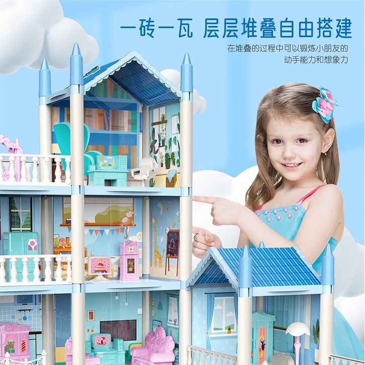TERBARU RUMAH 4 Lantai Mainan Rumah Rumahan Villaku Anak Perempuan Lengkap Dengan Perabot Rumah 4 Boneka 2 Lampu / Maina