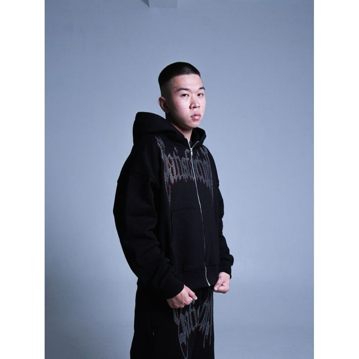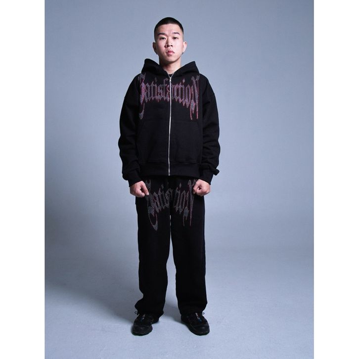 TERLARIS SATISFACTION HOODIE ZIPPER BOXY 375GSM RHINESTONE BLEACH BLACK