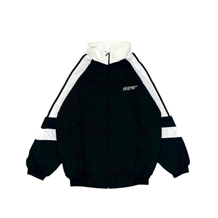 LIFESAVER Jaket Parasut Vintage Pria Wanita Jaket Tracktop Winbreakers Original - Hitam Putih M