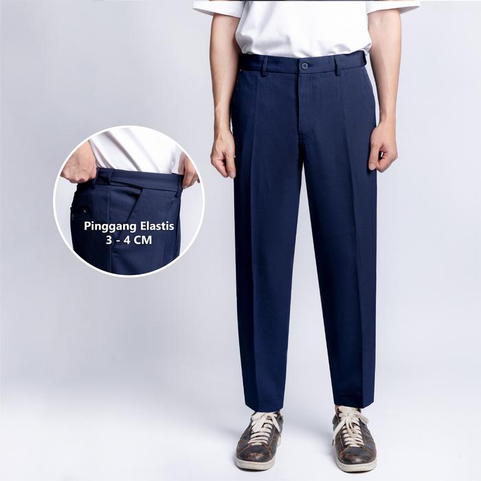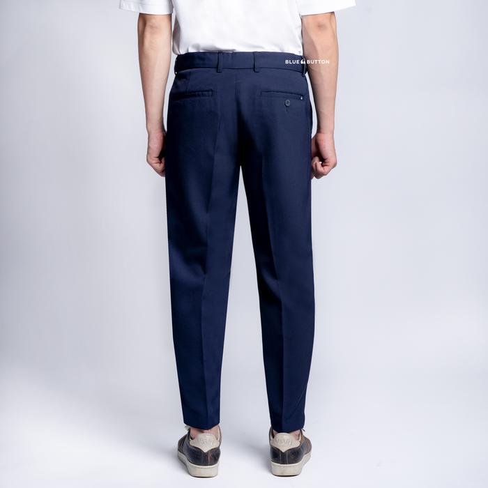 BlueButton Premium Trouser Celana Bahan Pria Slim Fit Navy Ankle Pants Air Nyaman Waist Melar - Navy 28