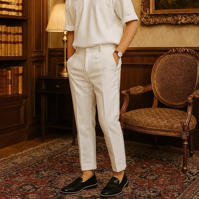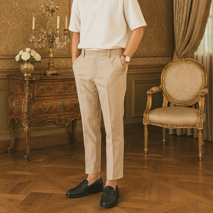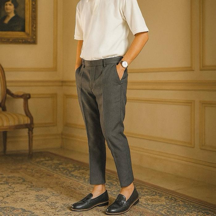 Celana Ankle Pants Pria Premium Slim Fit Stretch Lembut Formal Casual - HITAM 27