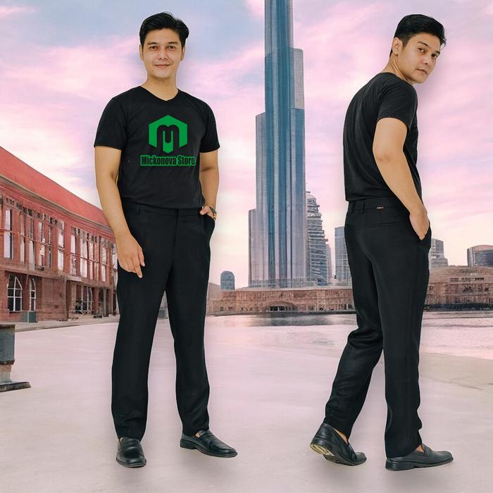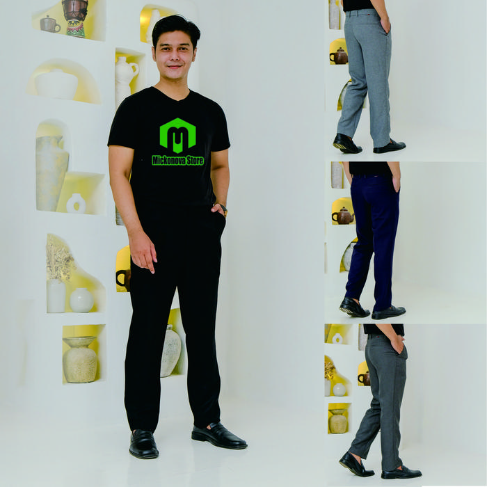 Celana Formal Pria Slim Fit Panjang Kantor Hitam Kerja Navy - Abu Tua 27