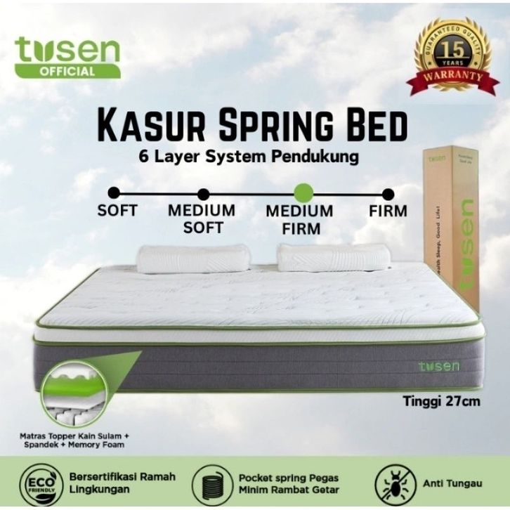 TUSEN Matras springbed in the box tebal 27cm springbed plustop pocket kasur busa garansi 15tahun 120/160/180 cm