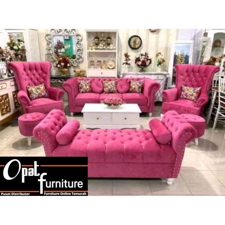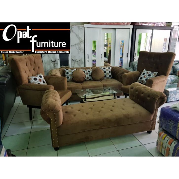 Sofa Chesterfeld 3211+MEJA HpL Sofa Tamu Modern Termurah Cirebon Majalengka Indramayu Brebes Tegal
