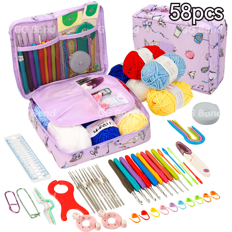 58PCS DIY Jarum Rajut Set Pemula Lengkap Kit Alat Rajut Portabel + Tas Menjahit, Kasing Penyelenggara, Pengatur, Pembagi