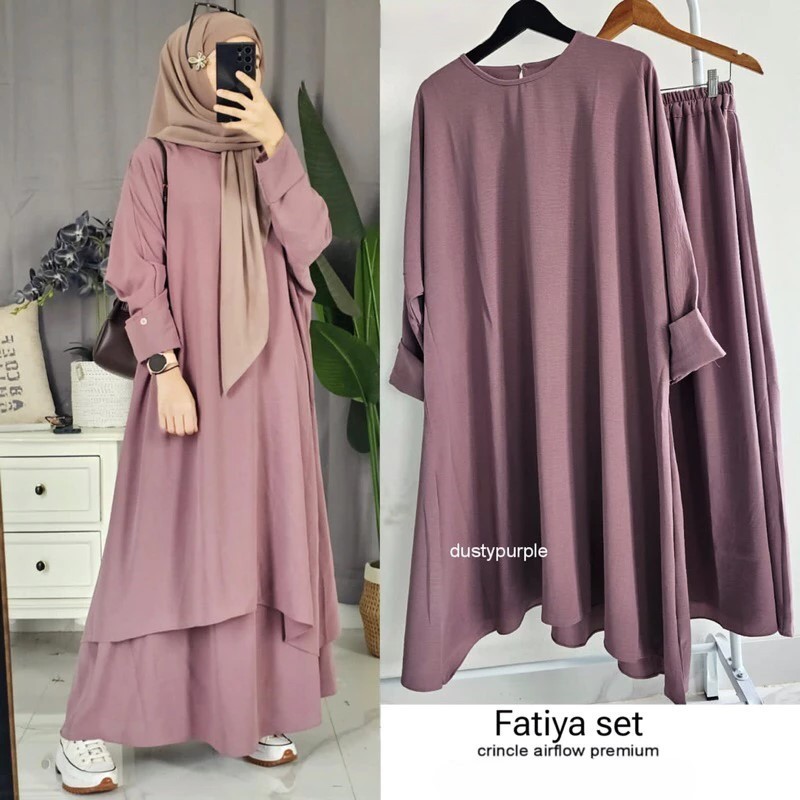 [Star]One set Abaya Fatiya set abaya matt cringkle airflow premium Tunik+Rok Jumbo
