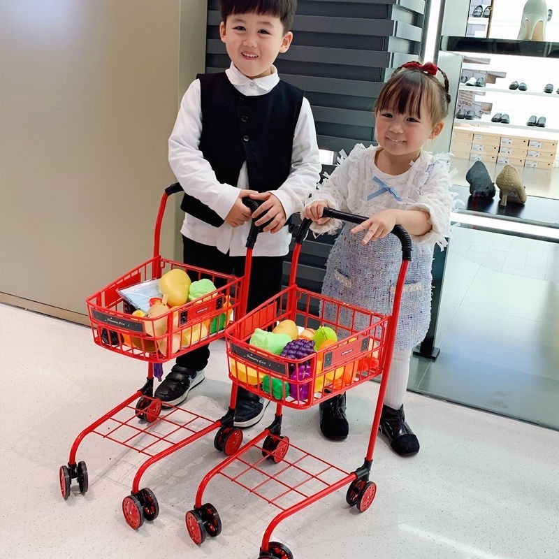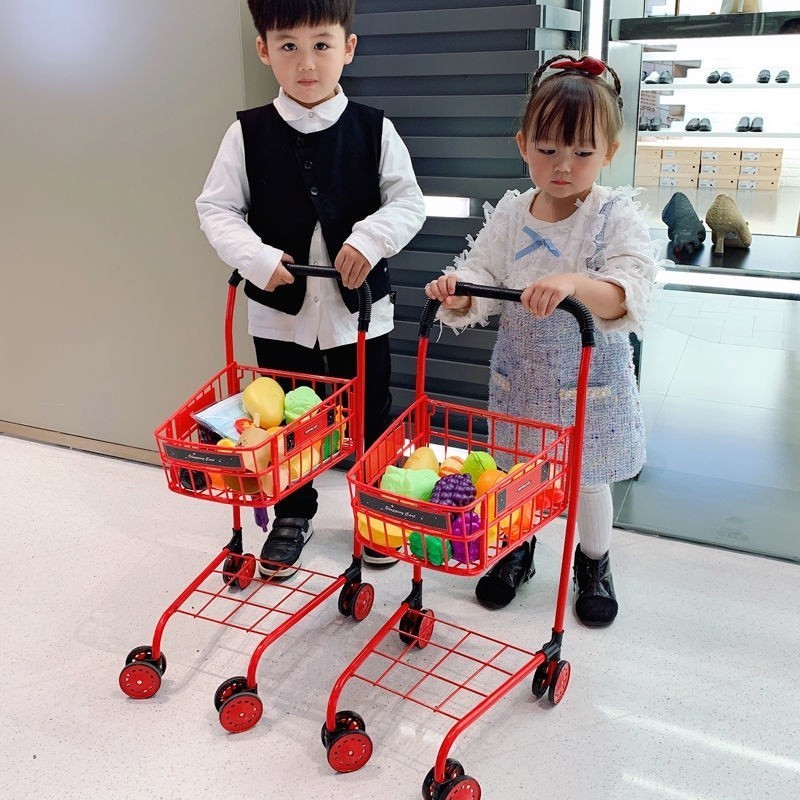 Kereta belanja mainan anak -anak anak -anak troli belanja buah -buahan buah -buahan bermain mainan rumah, mainan edukasi