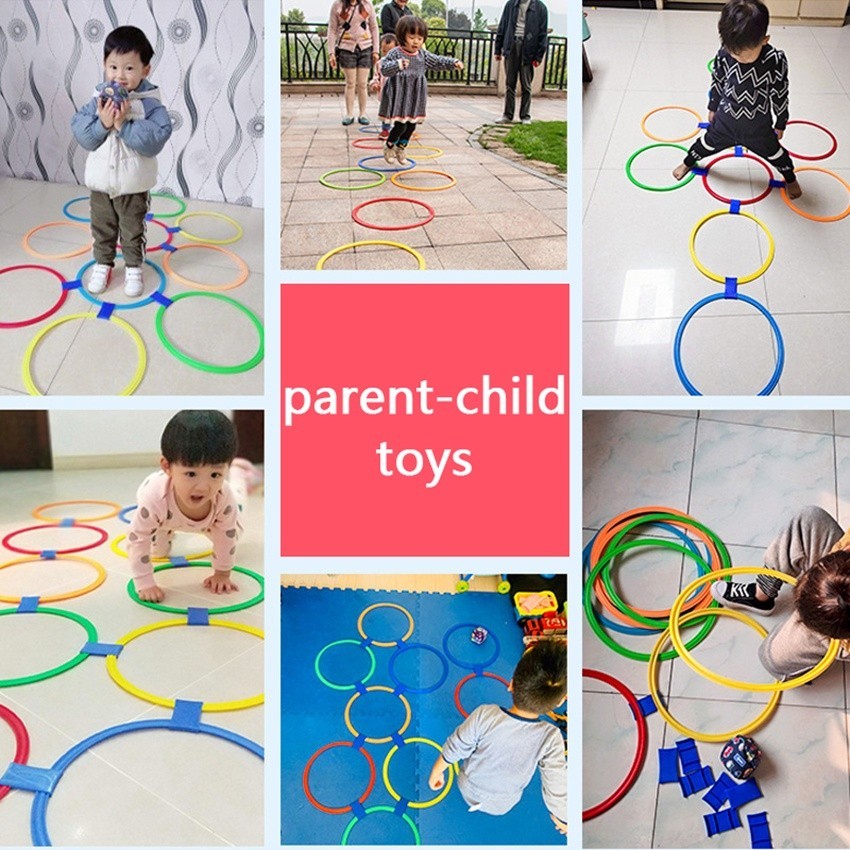 POPTOYS 10 PCS Lingkaran 28/38CM Diameter Hopscotch Mainan/Mainan Lompat Loncat Anak/Pincang Jumping Set Ring Cewek Cowo