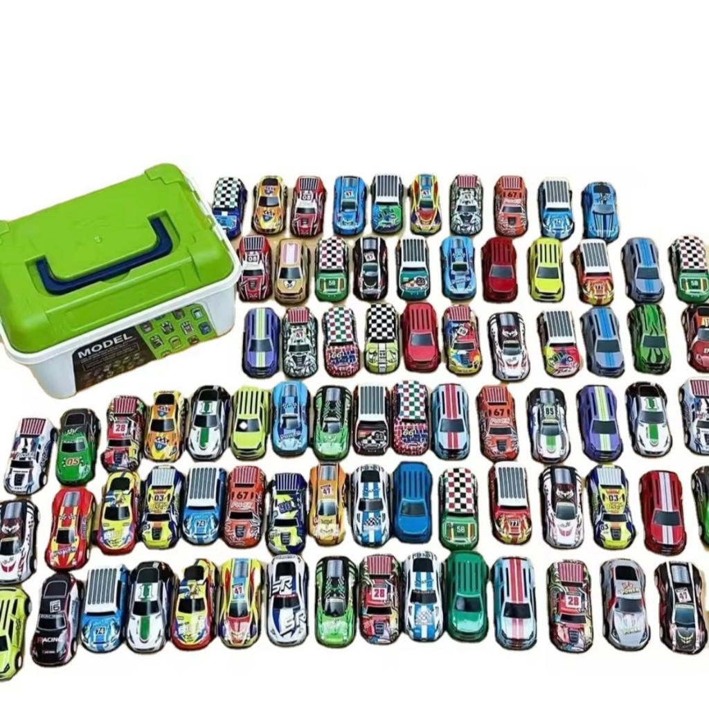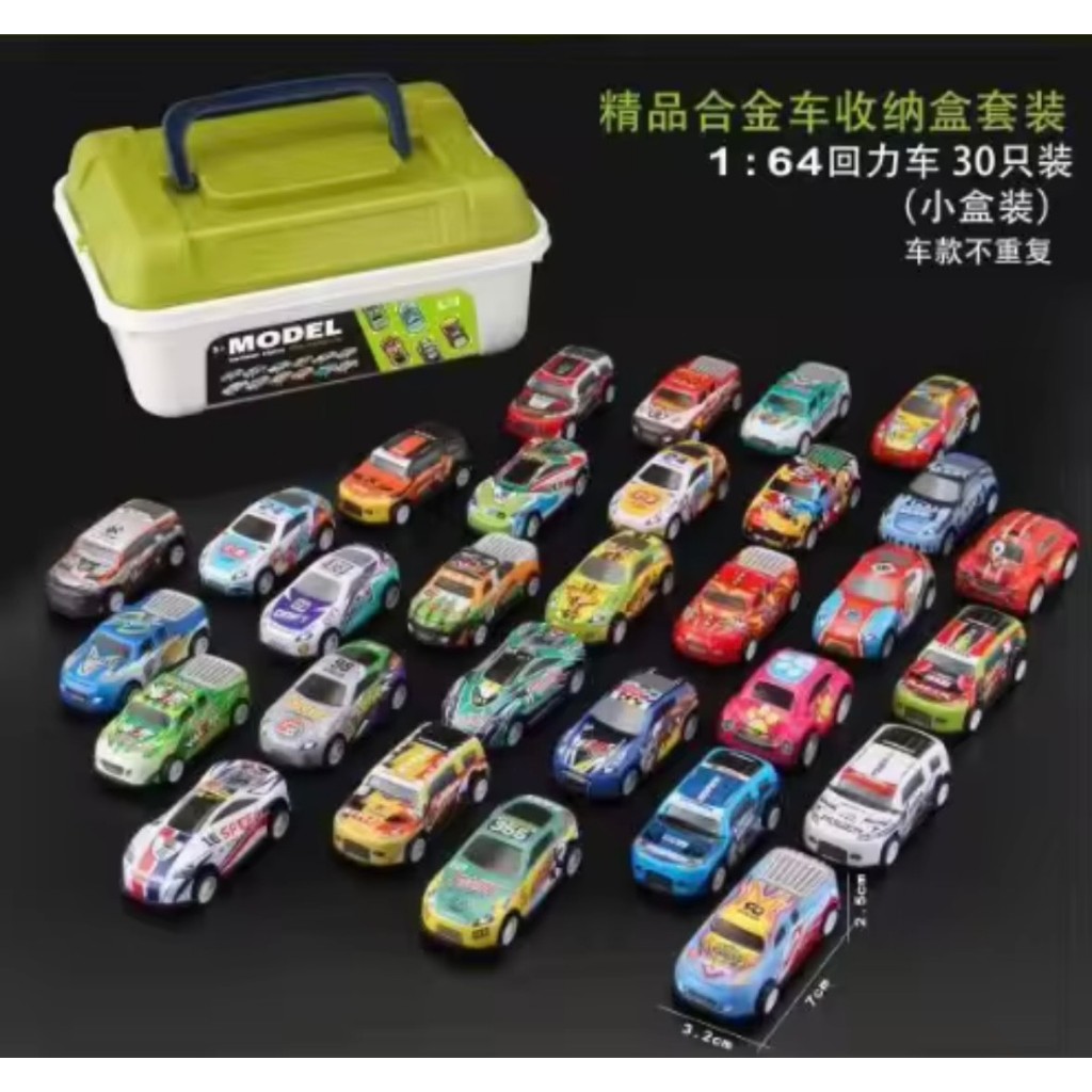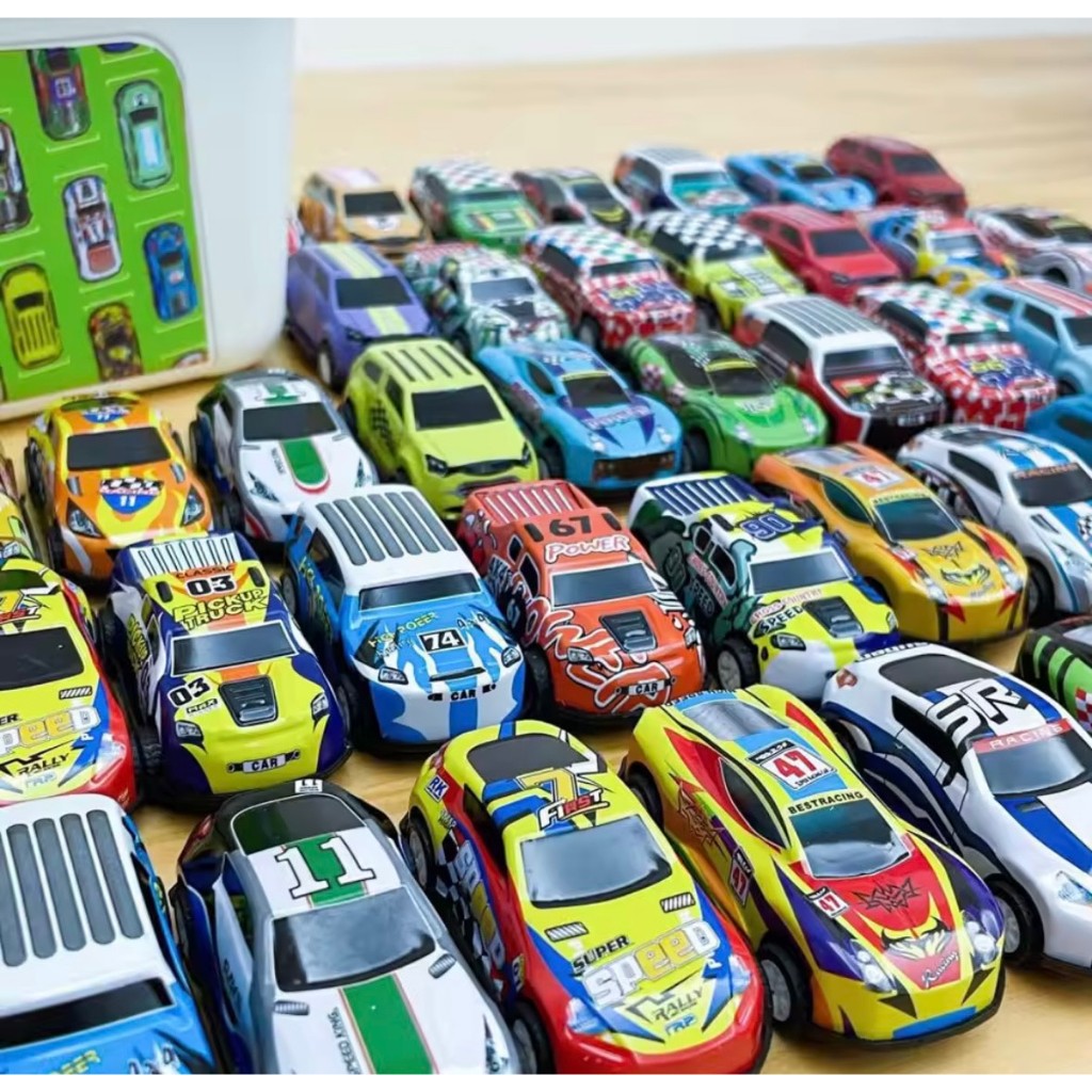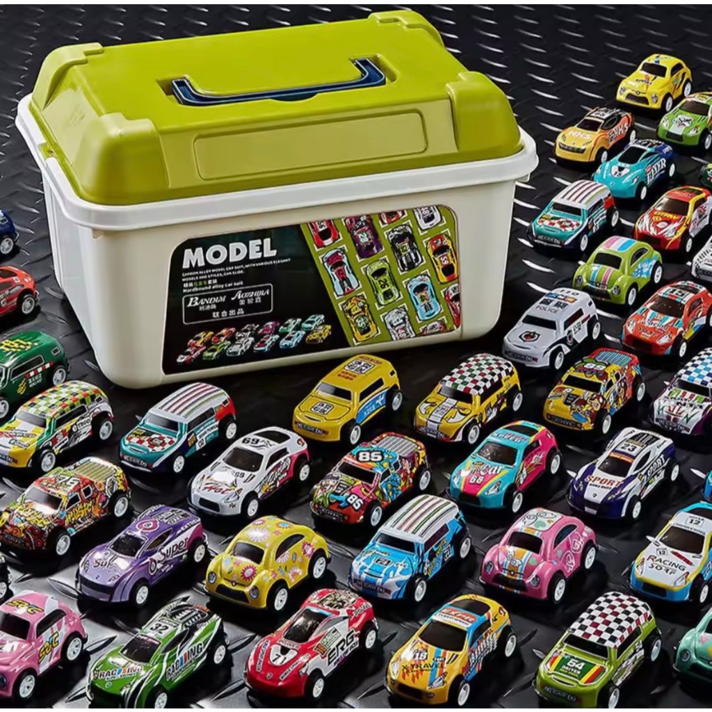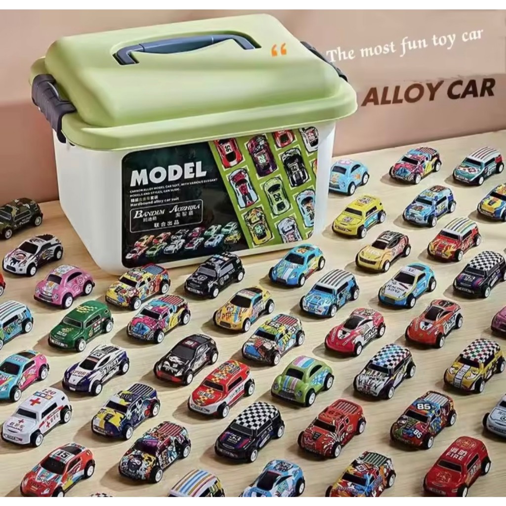 (60pcs+Container Box) Mainan Anak Mobil Balap Mini Bahan Besi Alloy Pullback Toys