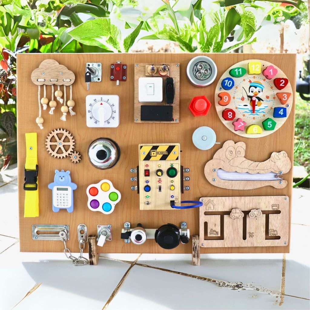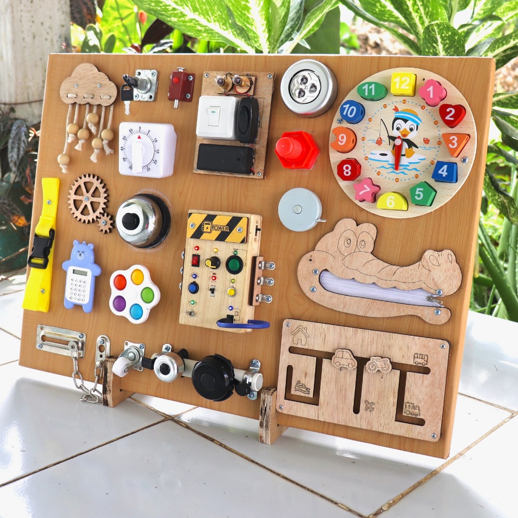 Darosa - Busy Board Custom - Papan Kayu - Mainan Edukasi Sensori Motorik Anak