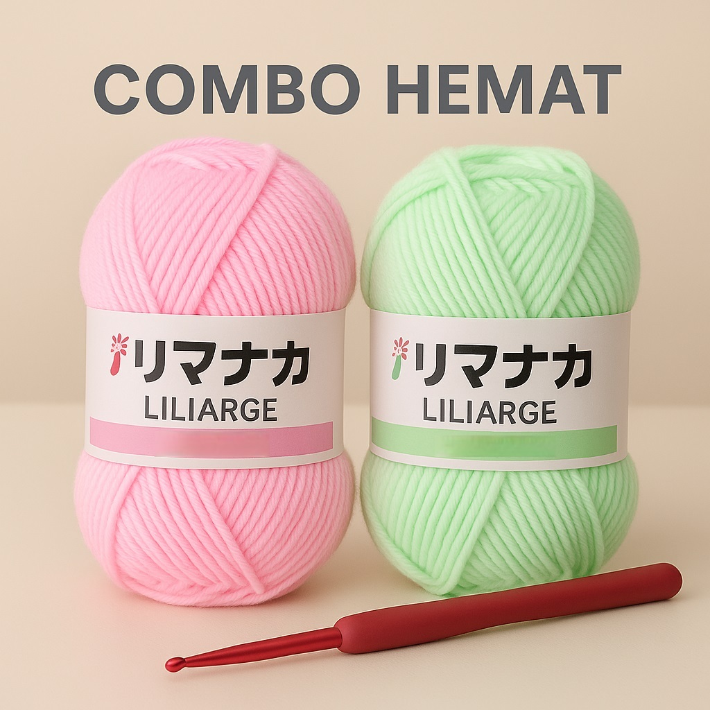 MADEBYBULAT - PAKET COMBO HEMAT 3IN1 BENANG RAJUT STARTER KIT CROCHET MILK COTTON 4PLY + HAKPEN