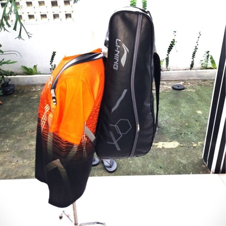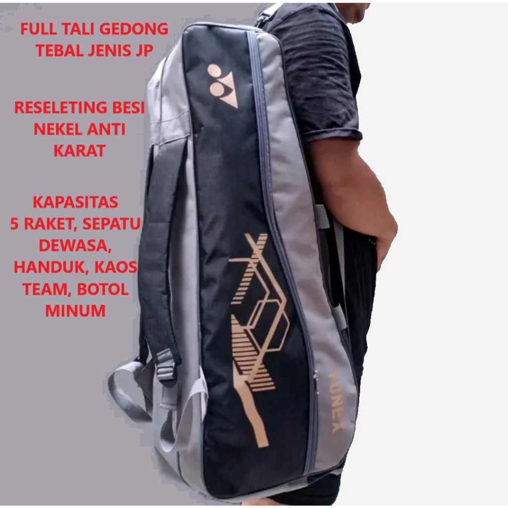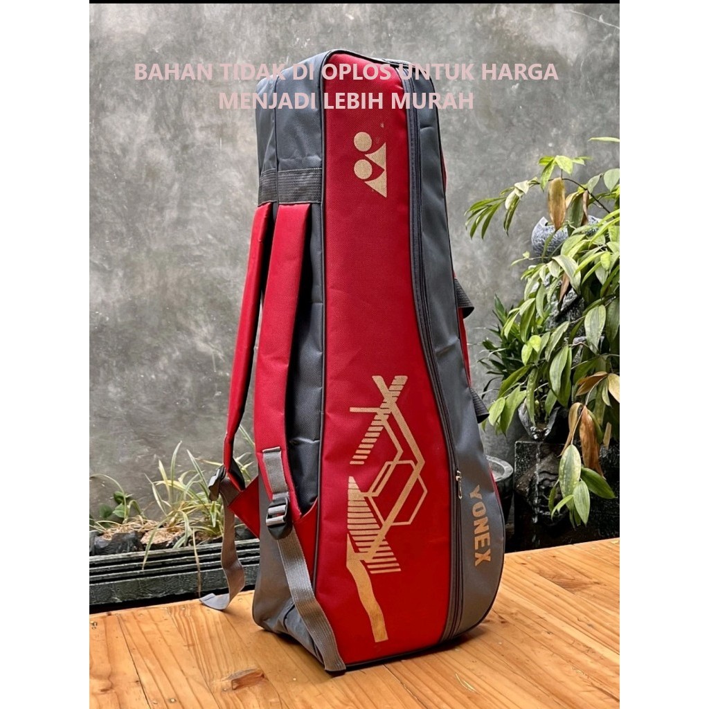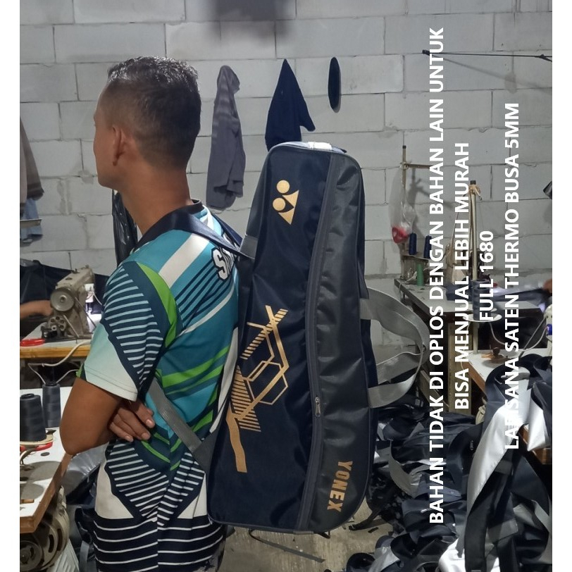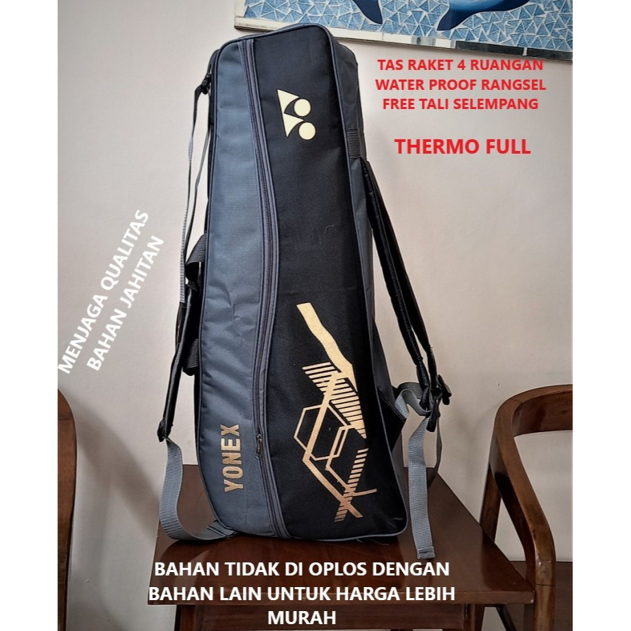 Tas raket 4 ruangan 2 ruangan kantong samping uk P 72cm T 29cm L 16cm kapasita 5 raket sampai 10 raket lapisan thermao d