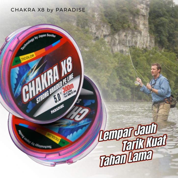 SENAR PANCING-Paradise PE Chakra X8 150M-300M Multi Color – Kuat, Licin, Anti Keriting, Tahan Tarikan & Gesekan