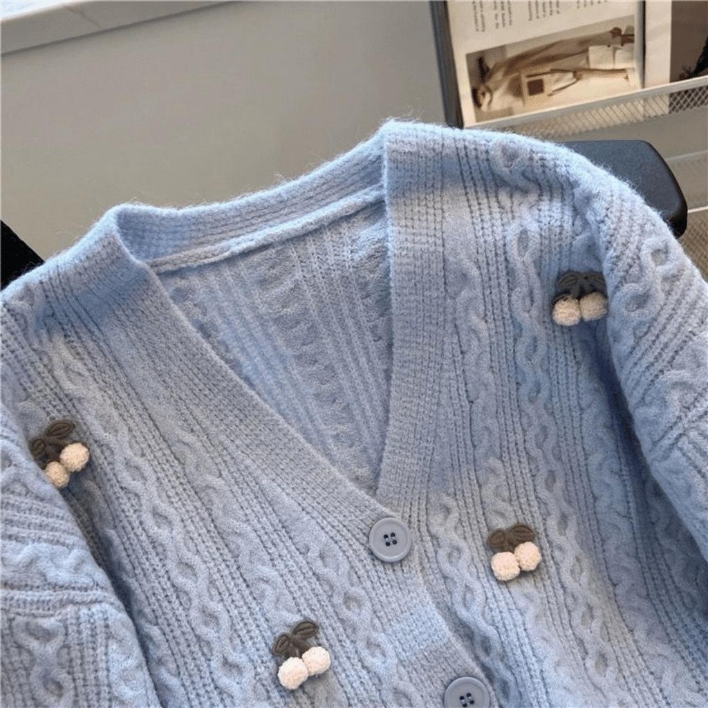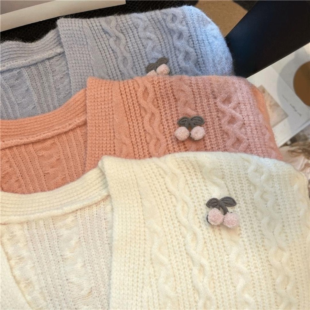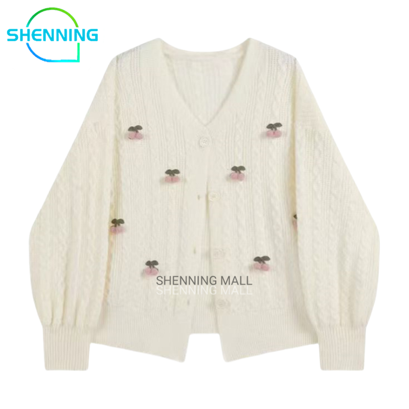 SHENNING Cardigan Oversize Cherry Premium Wanita Atasan Rajut Sweater Knitwear Outer