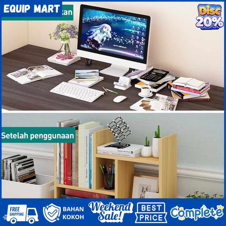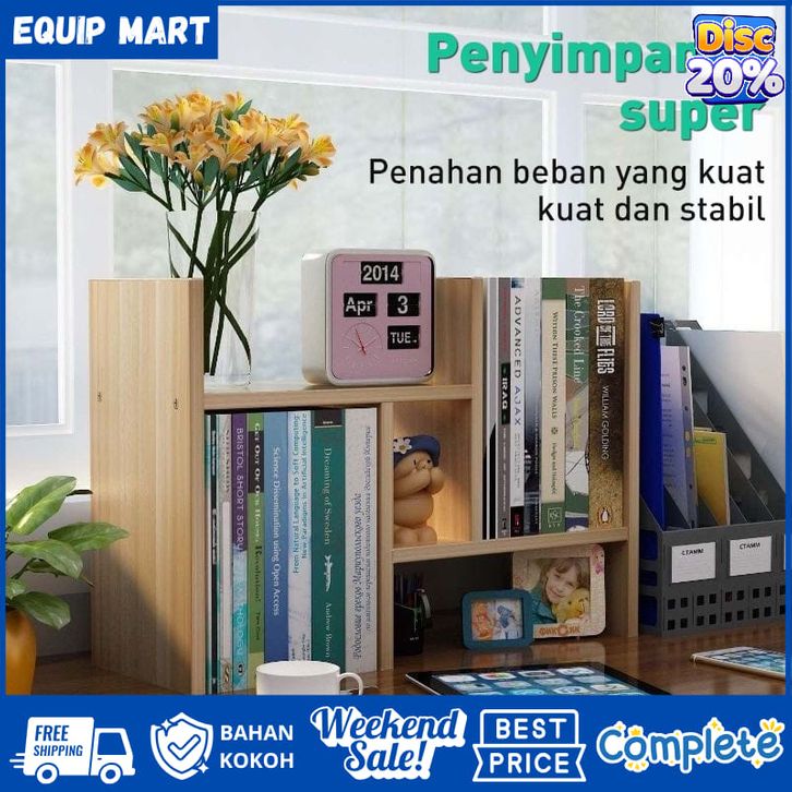 Rak Buku Rak Kayu Serbaguna Rak Atas Meja Kuat dan Kokoh Bookshelf DIY Minimalis Rak Buku Mini Portabel