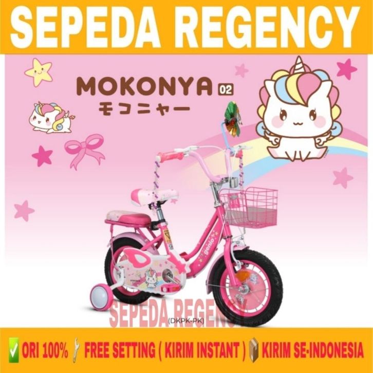 Sepeda Anak Perempuan GENIO MOKONYA 02 Kids Bike Ukuran 12 16 18 Inch Keranjang Usia 2-8 Tahun
