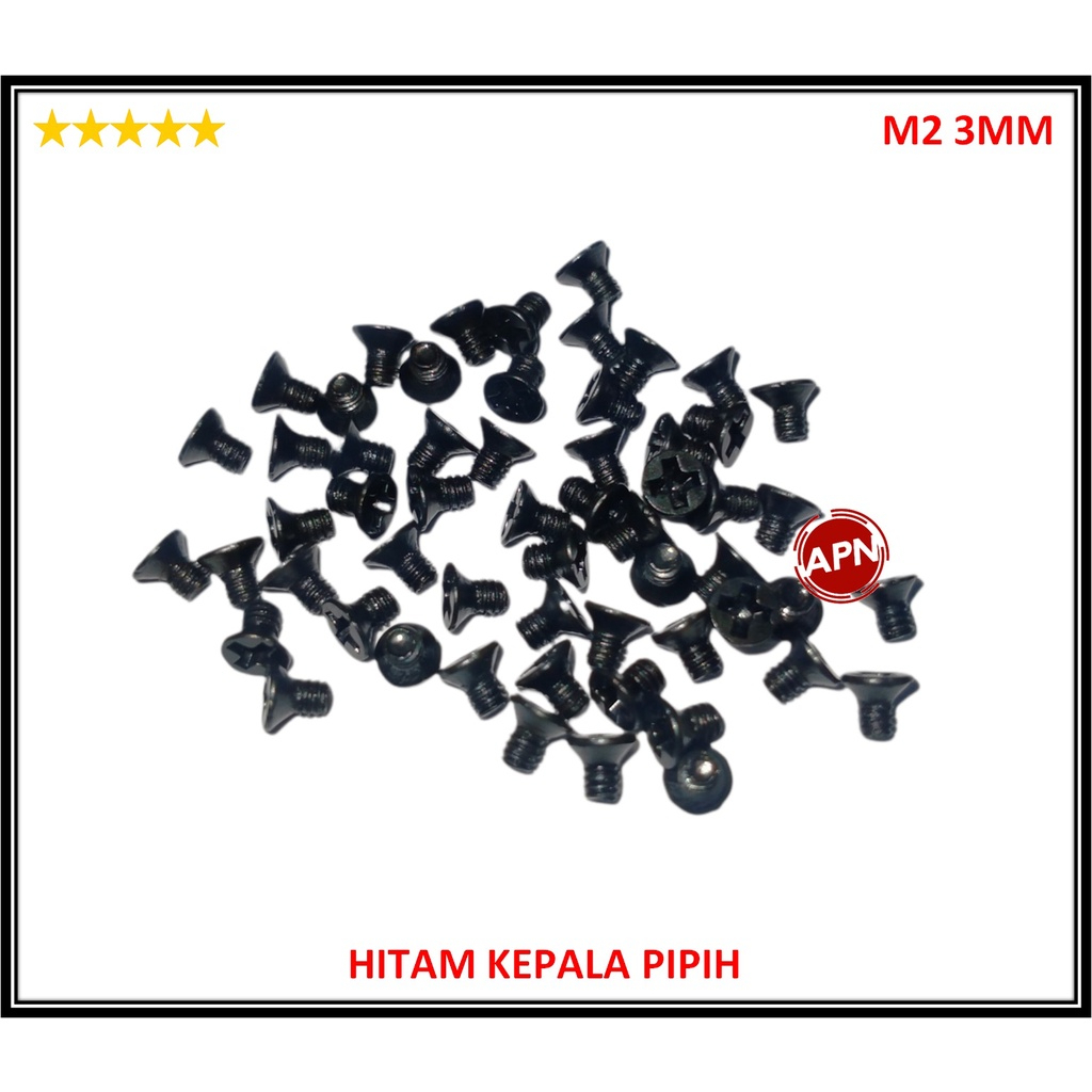 BAUT / SCREW M2 3MM HITAM KEPALA PIPIH