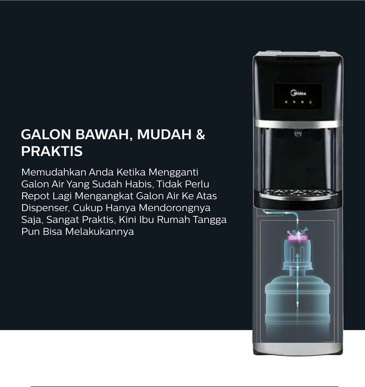 Dispenser Midea YD1135AS Dispenser Galon Bawah hemat daya - Bottom Loading Water Tank Stainless Steel (GARANSI)