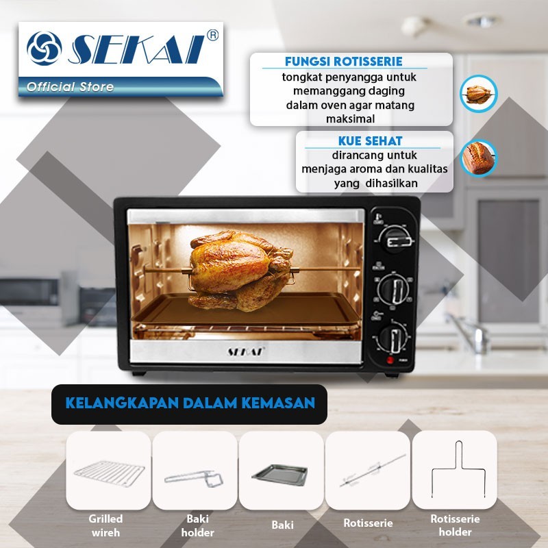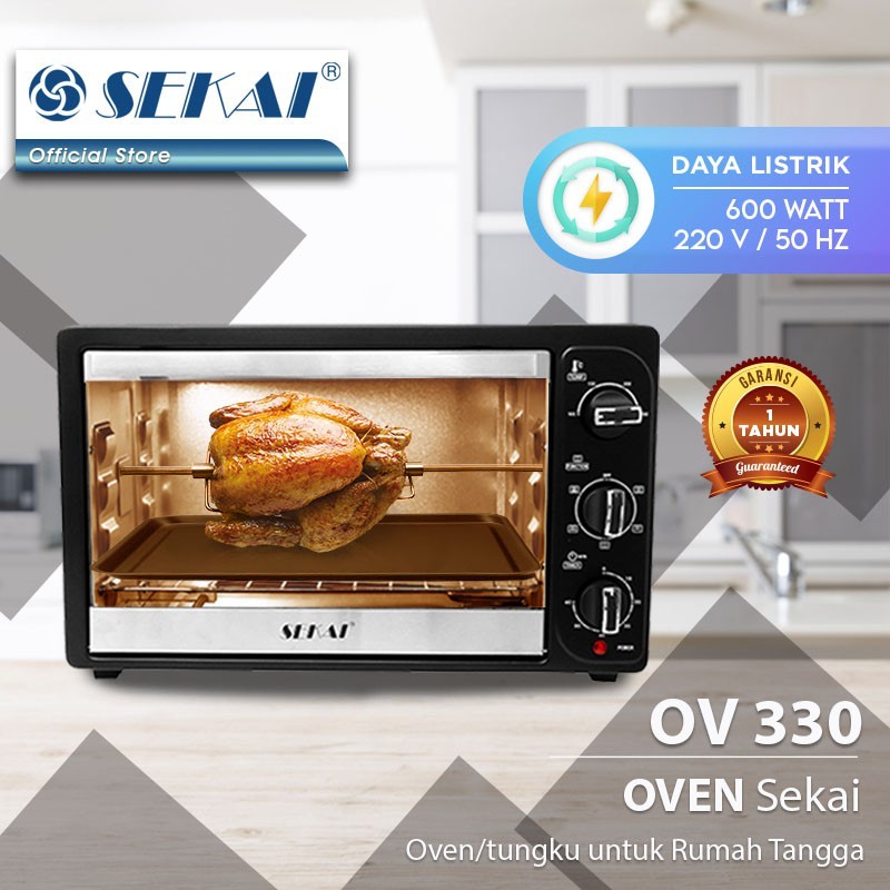 Oven SEKAI Listrik Low Watt Kapasitas 36L UkL / 33L UkD Pemanggang Makanan Rotisserie - OV 330 Tanpa DP