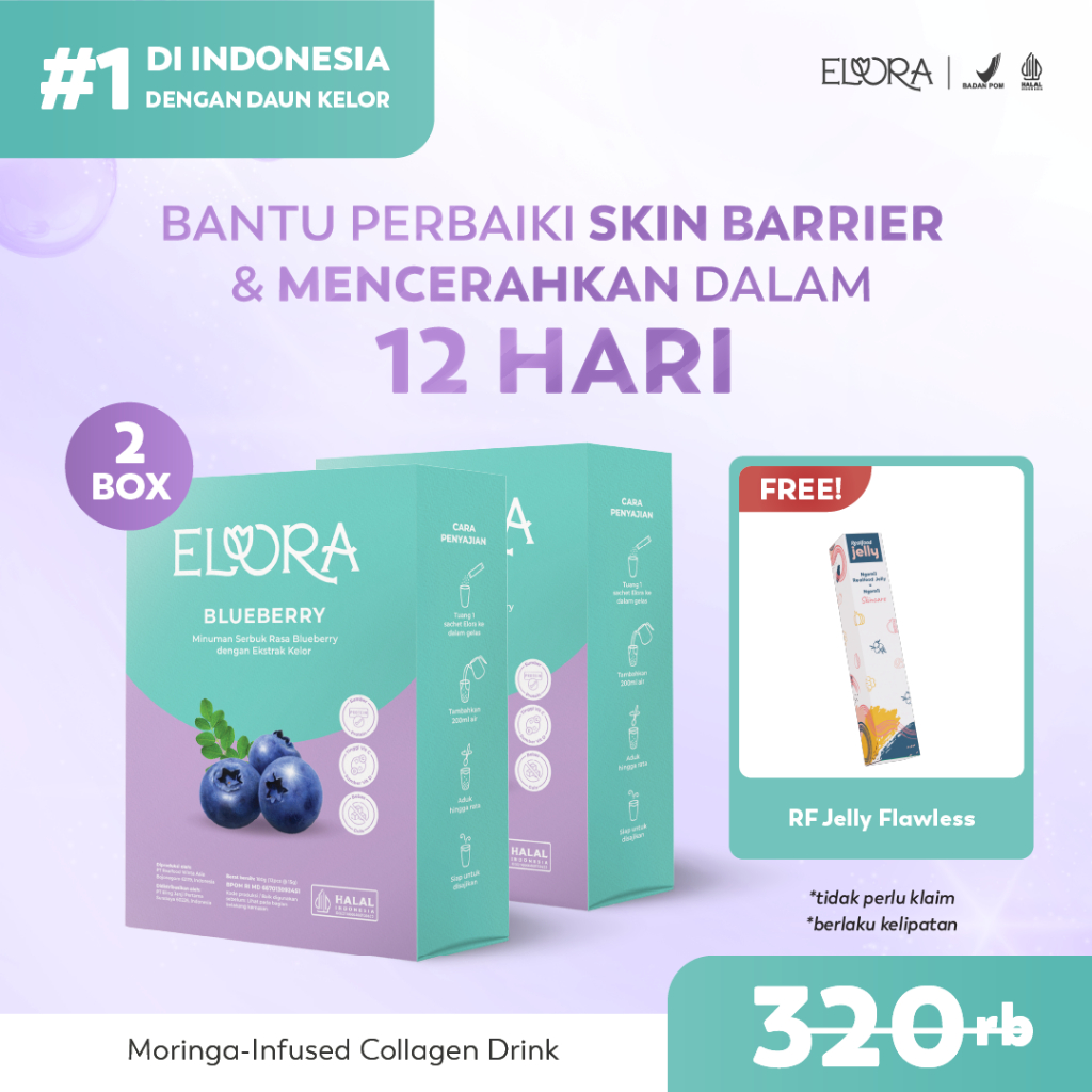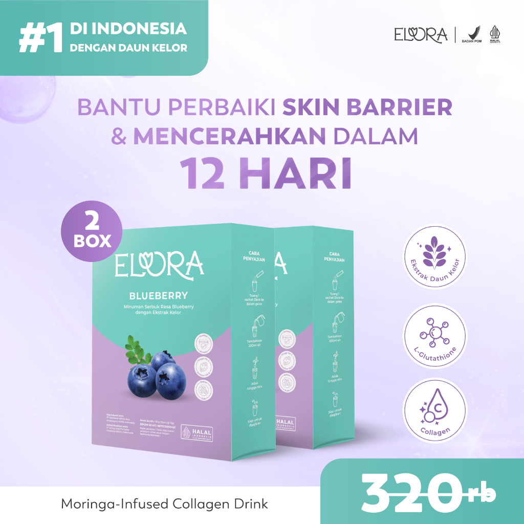 ELORA DAILYGLO Collagen Drink Blueberry - Paket Hemat 2 Box (24 Sachet) | Kulit Glowing | Melembabkan