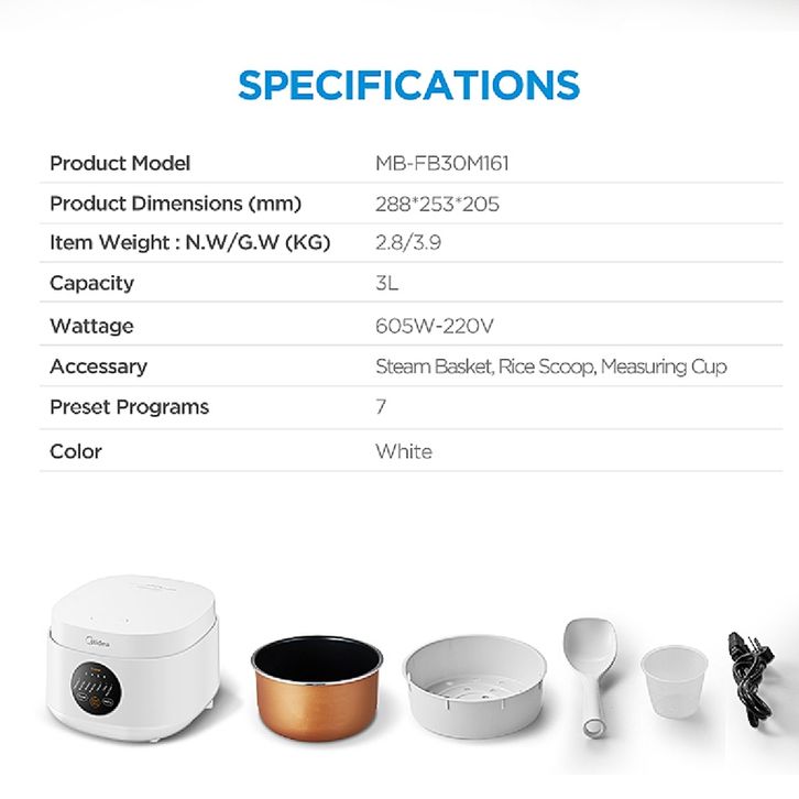 Majikom Midea Digital Rice Cooker MB-FB30M161W 5 Layer And 7 Preset Menu Official Store