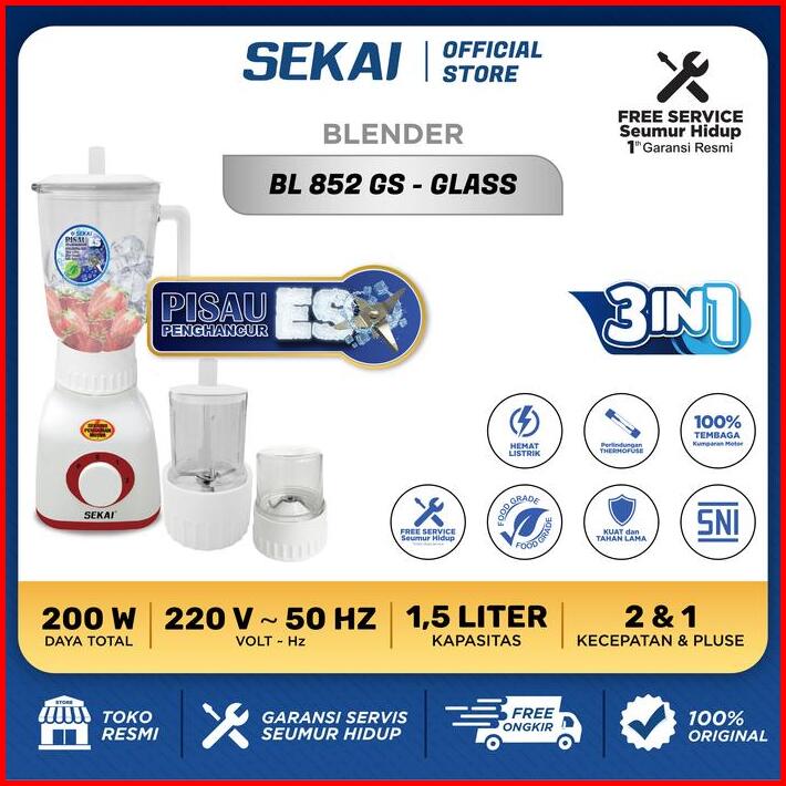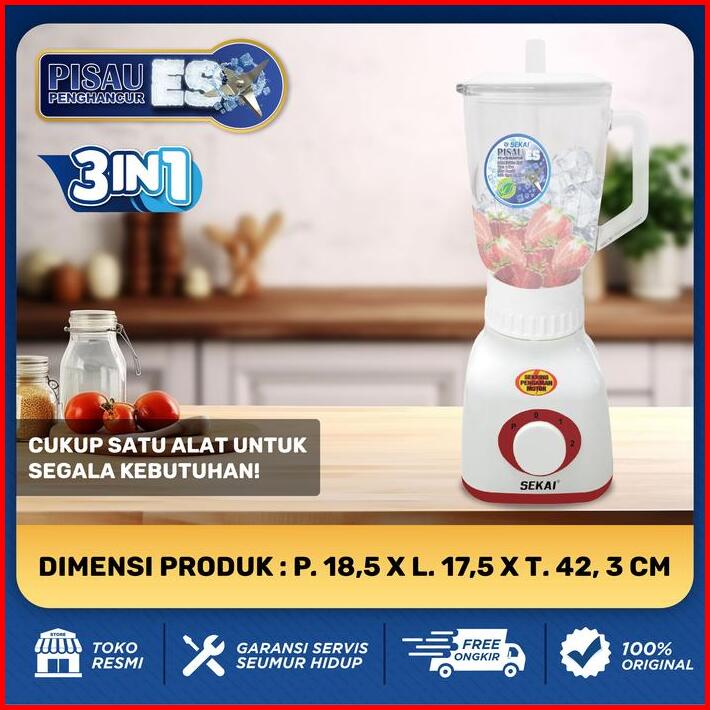 Sekai Blender Kaca 1 5 Liter 3 In 1 Juicer Dry Mill Blender Jus Dan Bumbu Serbaguna