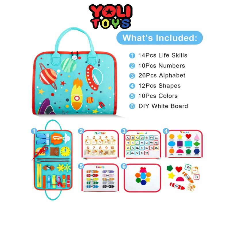 Yoli Toys - Papan Sibuk Mainan Edukasi Busy Board Montessori Mainan Edukasi Papan Belajar Kognitif Bayi Dressing Skill S