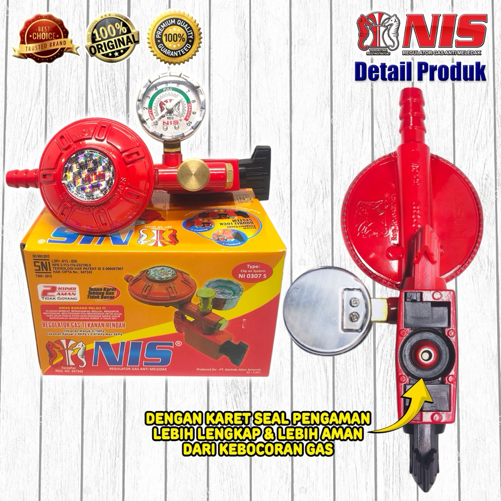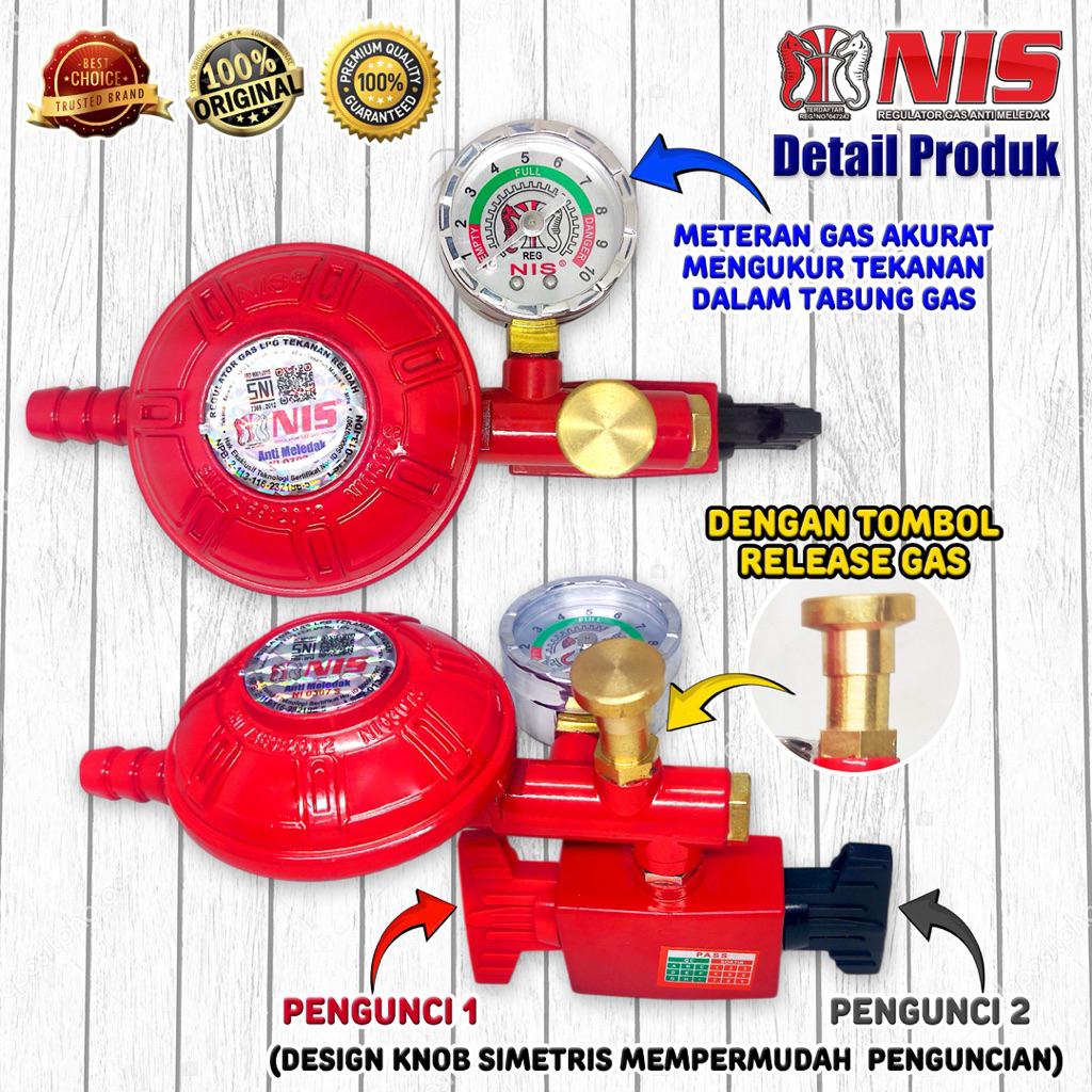 Regulator Nis Robot 0307 (Double Lock) Paket Hemat Selang Gas Gratis Ongkir