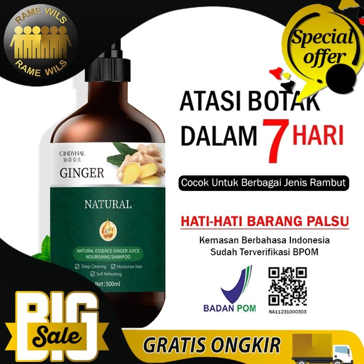 [BPOM] CINDYNAL Shampo Jahe Herbal/ Shampoo Penumbuh Rambut Cepat Ginger Sampo Anti Botak Perawatan Hair Care Treatment/