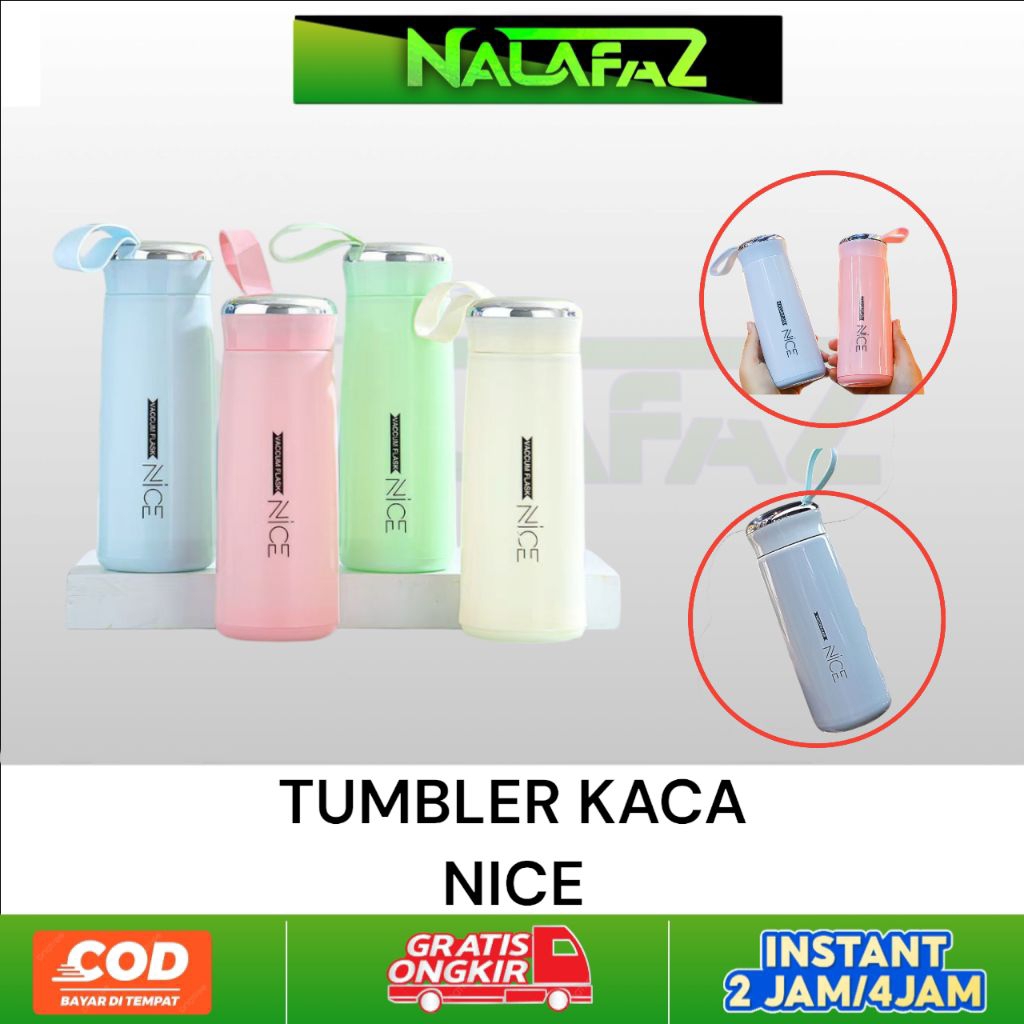 BOTOL KACA NICE TUMBLER WITH HANDLE 400 ML / BOTTLE SOUVENIR Pilihan