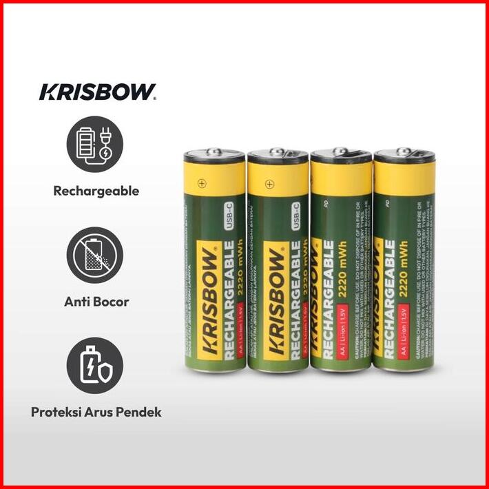Azko Krisbow Set Baterai Rechargeable Aa Type C