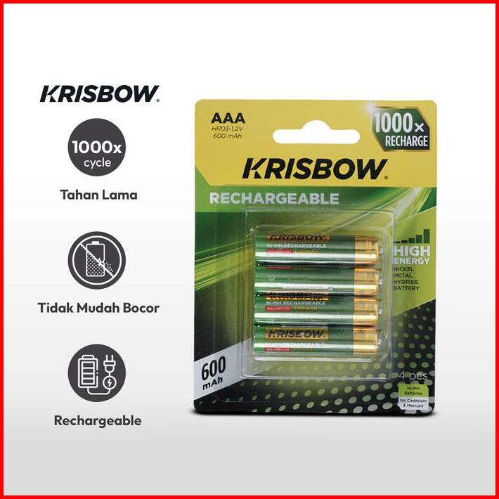 Azko Krisbow Set 4 Pcs Baterai Rechargeable Batre Isi Ulang Peralatan Elektronik Battery Rechargeable