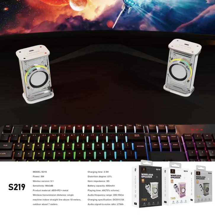 Speaker Bluetooth LENYES S219 Mini Led Colorfull Lights Wireless Speaker Bluetooth 5.1 Hifi Sound Quality TWS