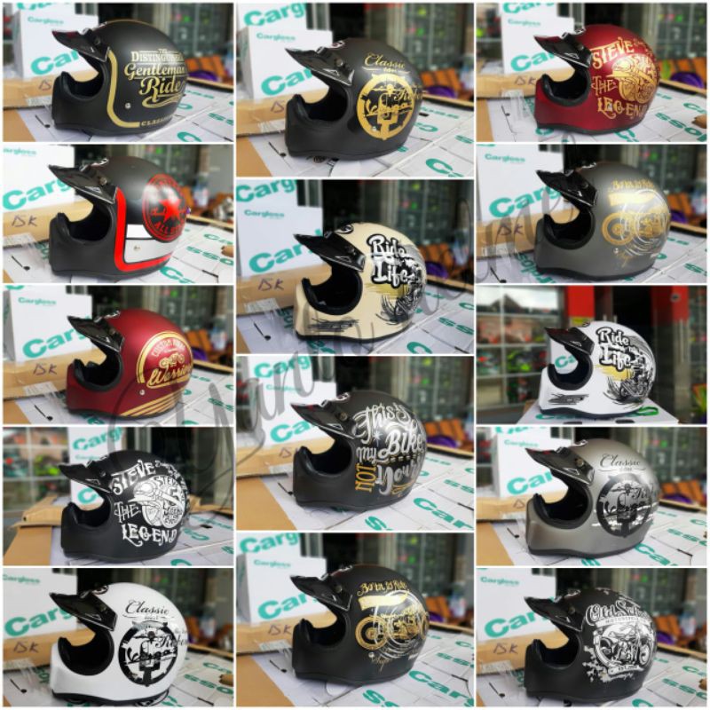 HELM FULL FACE CAKIL HBC MORIF & POLOE TANPA KACA RETRO CLASSIC CUSTOM VINTAGE JAPSTYLE MURAH