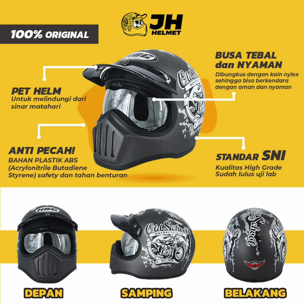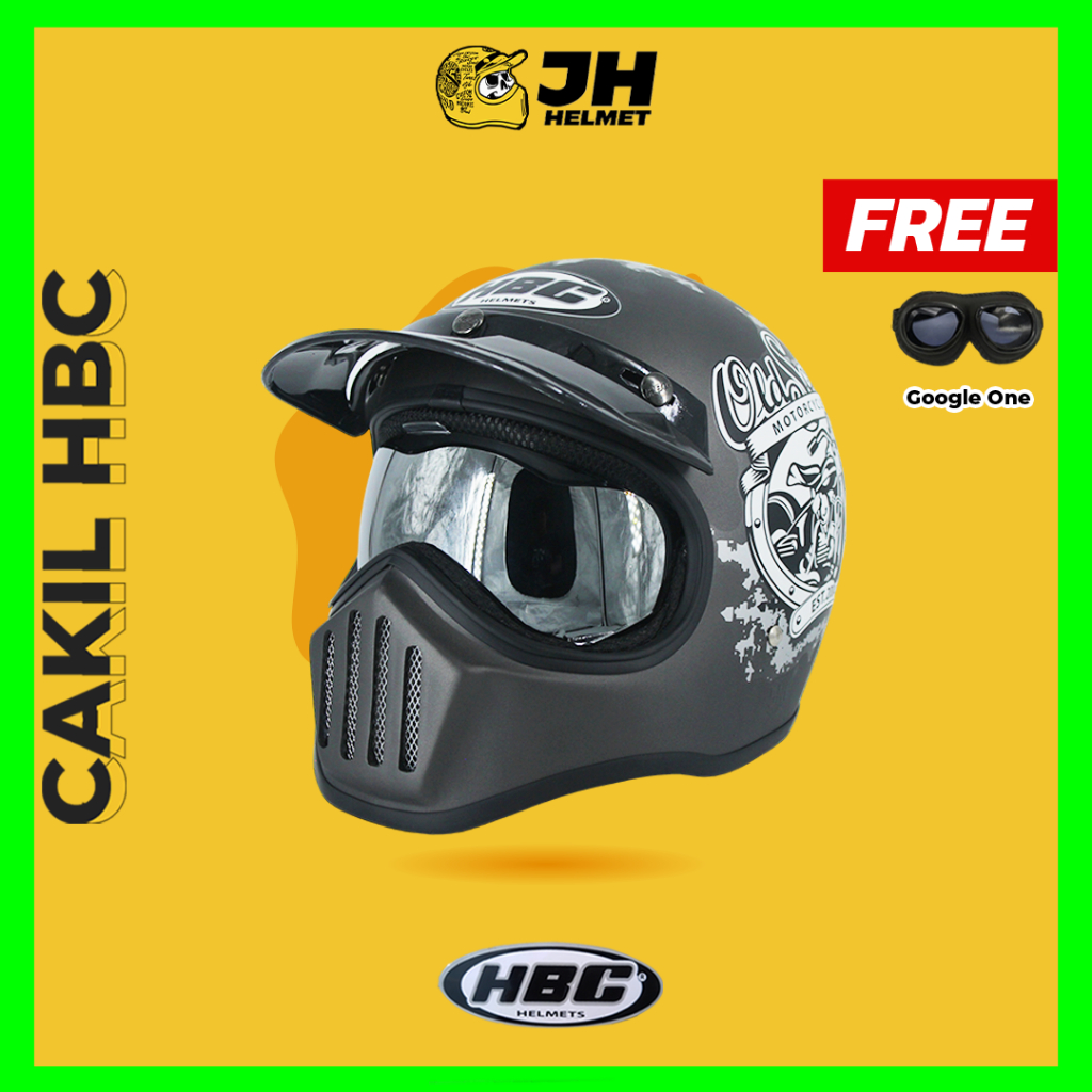 Helm Cakil HBC New Old School Grey + Inner Visor | Helm Retro | Full Face | Jual Helm