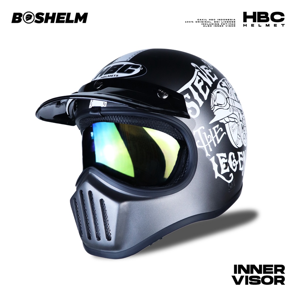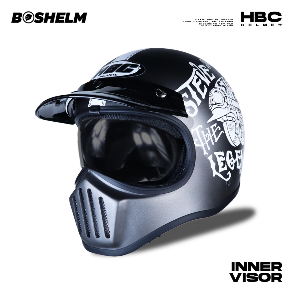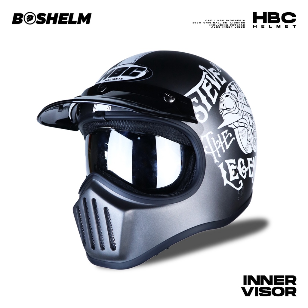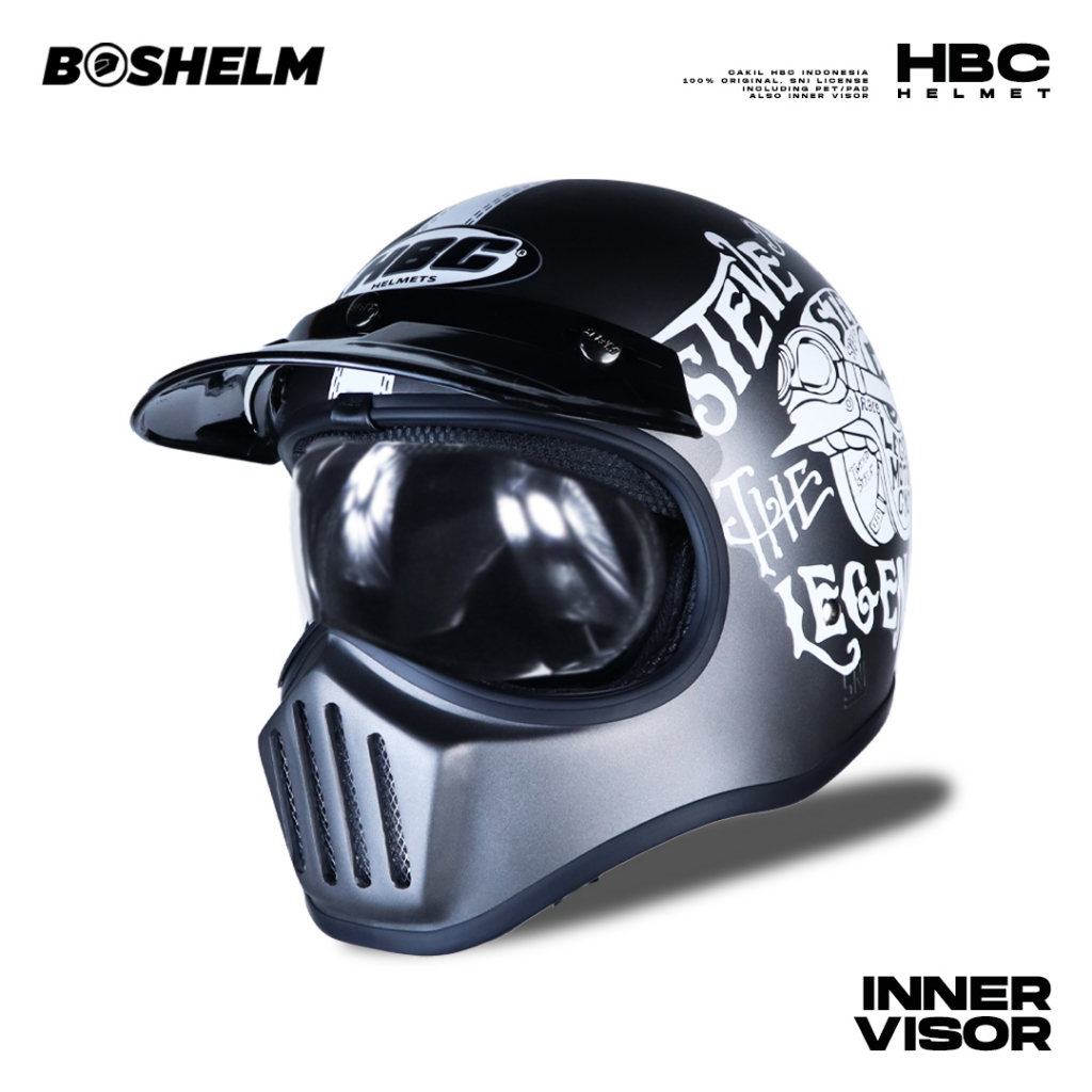 BOSHELM Helm Cakil HBC Inner Visor STEVE LEGEND GREY Helm Retro Full Face SNI
