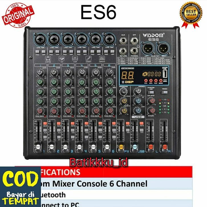 mixer audio MIXER WISDOM ES6 ES 6 E S 6 6CH ORIGINAL BLUETOOTH-USB-RECORDING Terlaris