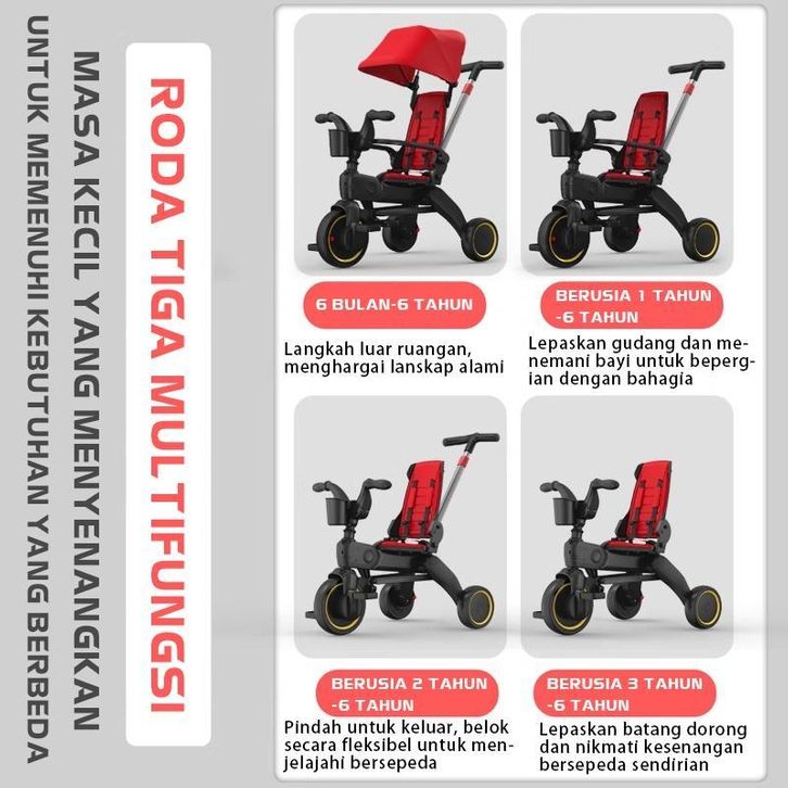 Sepeda Roda Tiga Lipat Multifungsi Dengan Ukuran Kabin/Sepeda Roda Tiga Tricycle Stroller Baby Sepeda Anak Lipat