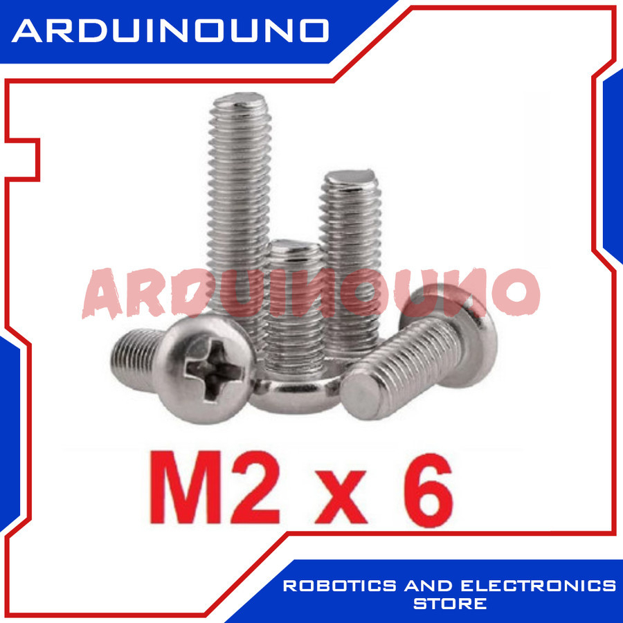Baut Silver M2x6 Cross Round chrome M2 long 6mm 6 mm besi metal SS Screw D 2mm 2 mm baud