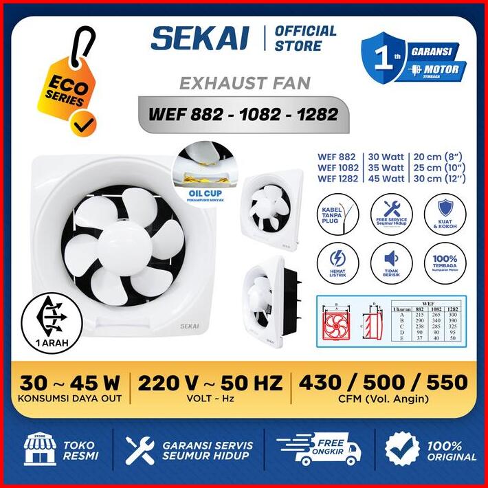 Sekai Exhaust Fan Dinding Kipas Angin Hexos Tembok 6 Inch 8 Inch 10 Inch 12 Inch