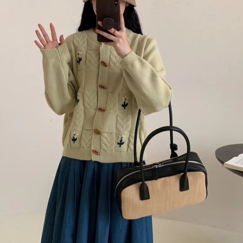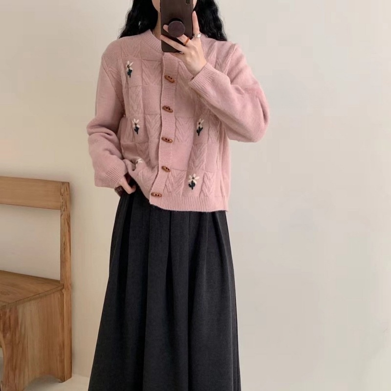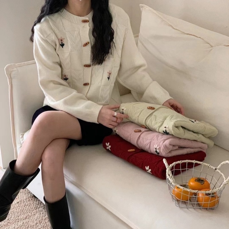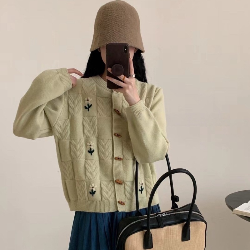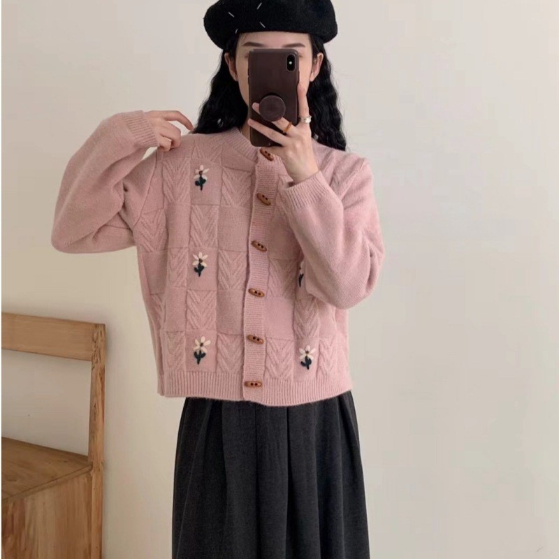 SHENNING Cardigan Rajut Knitwear Blossom Motif Bunga Knit Bunga Matahari