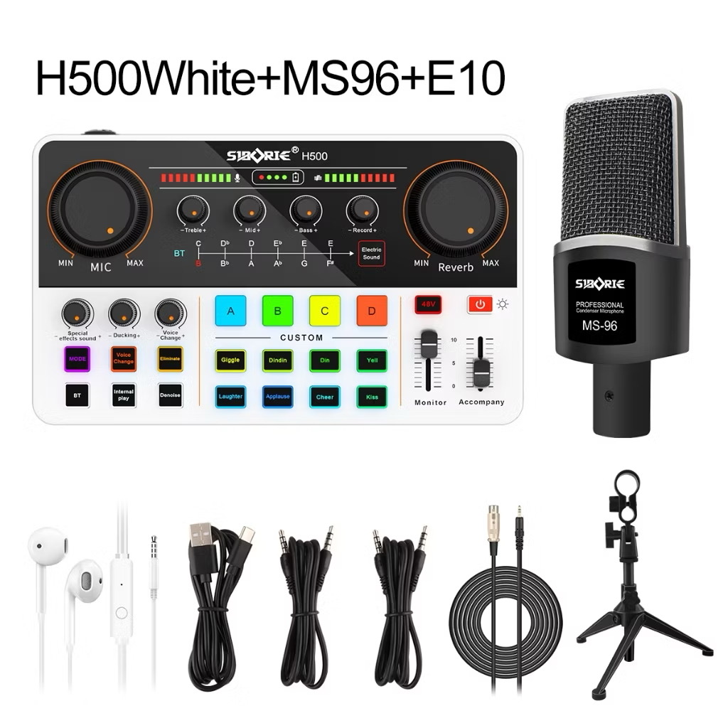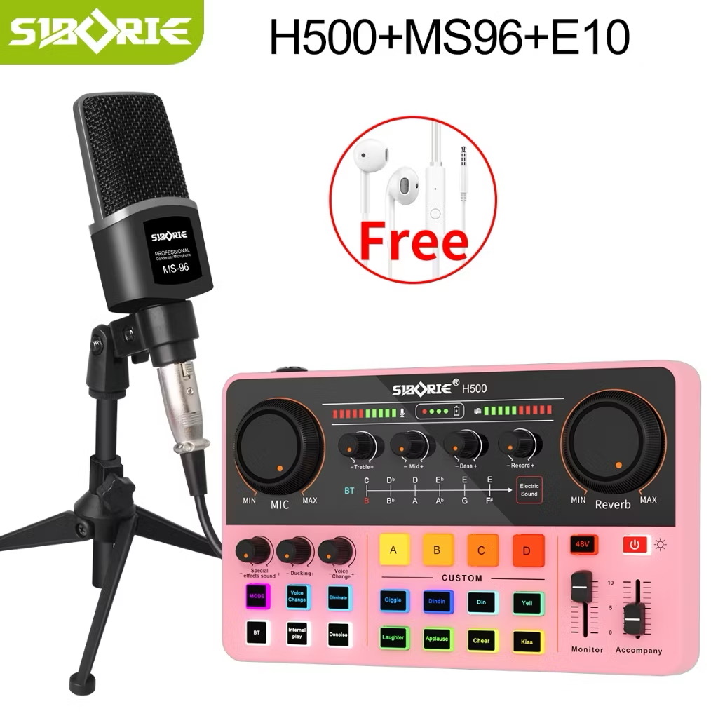 Siborie Soundcard H500+MS96 Mic+E10 Headset Paket Lengkap Set Mixer Bluetooth Sound Card MicroPhone