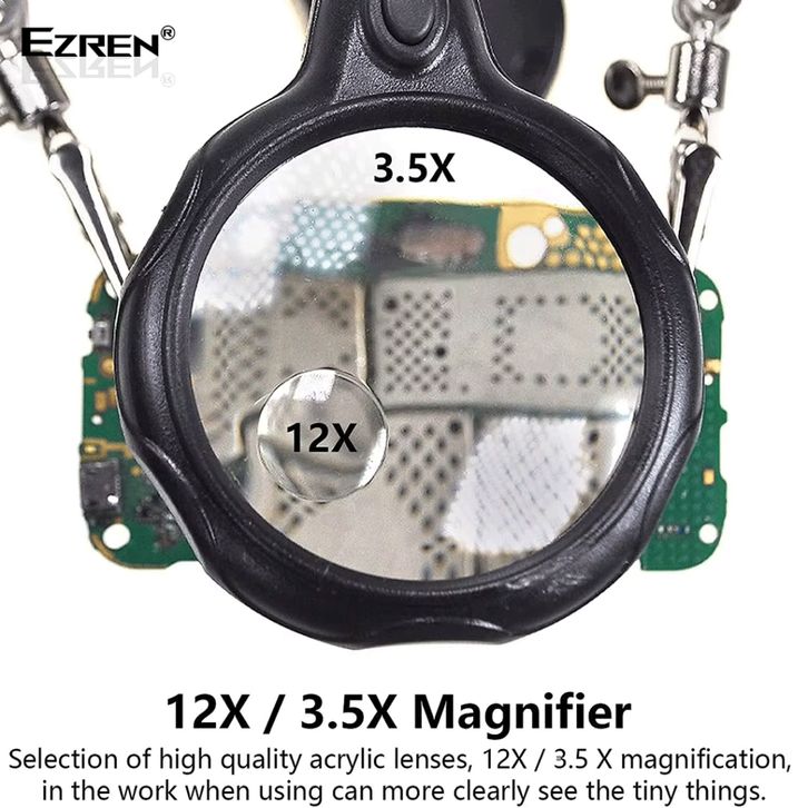 Ezren TE-801 Kaca Pembesar Penjepit PCB + Lampu Holder 3.5x 12x AAA