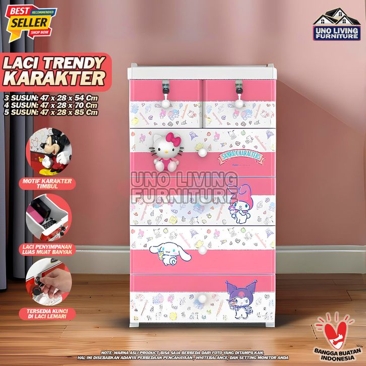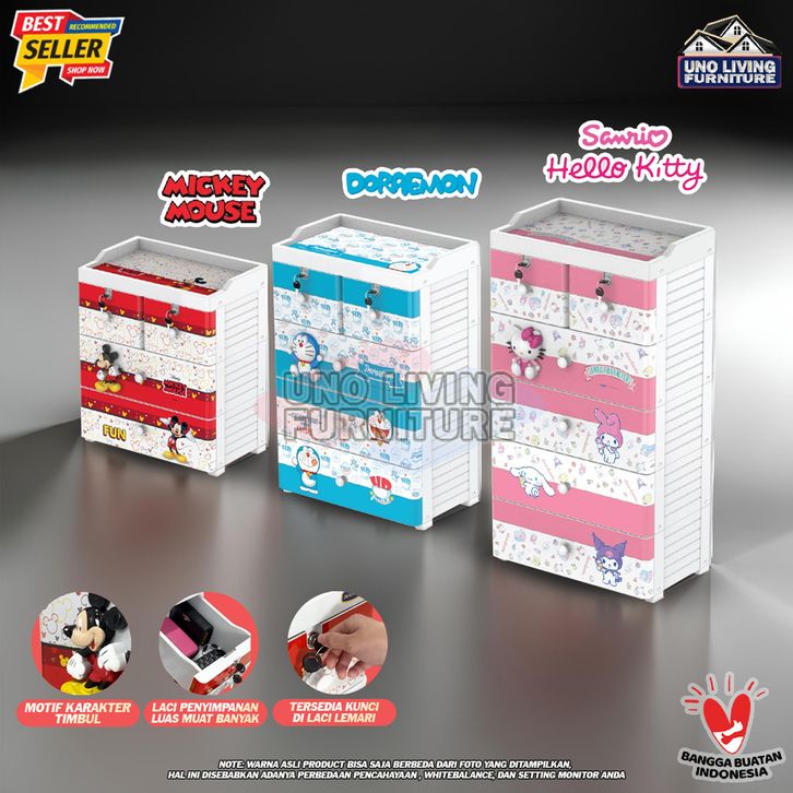 Lemari Pakaian Laci Lemari dengan Motif 3D dan Kunci Cabinet Nandos Bianca Naiba