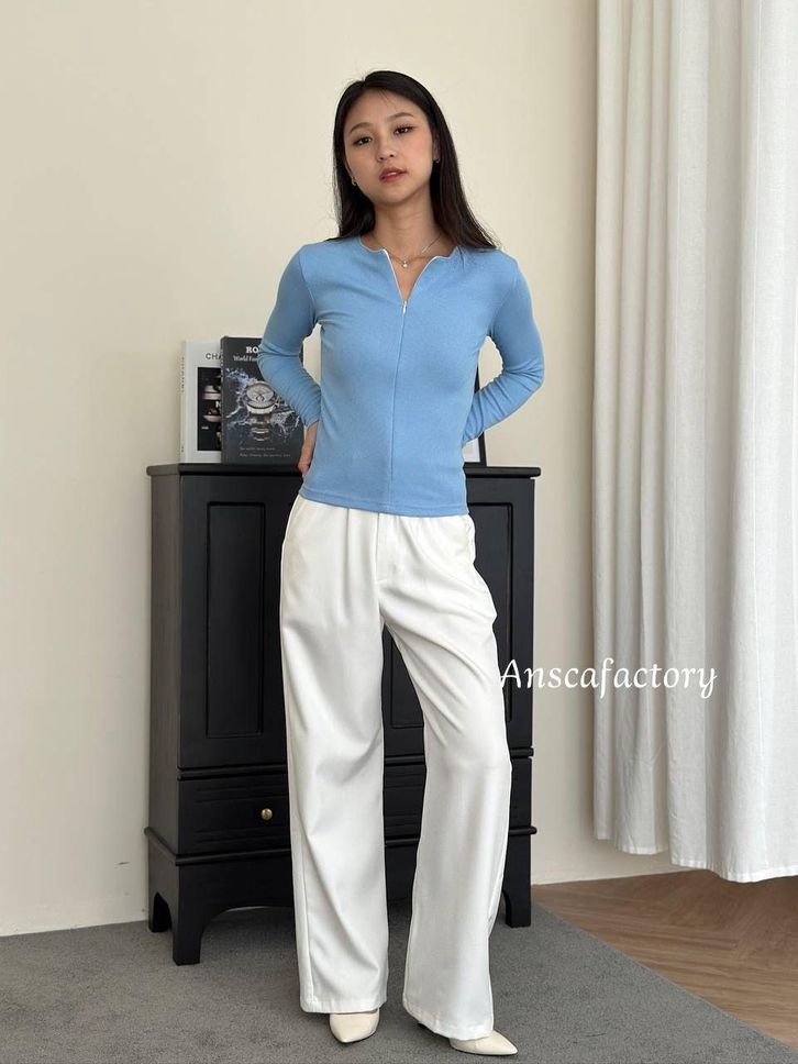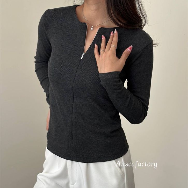 @nscafactory - Darci Top 820 - Casual Knitwear Zipper O Neck - Atasan Wanita Baju Lengan Panjang Basic