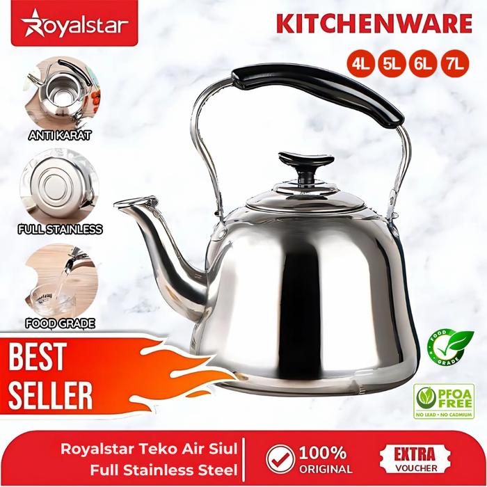 [8.8 SALE] ROYALSTAR TEKO AIR SIUL 4 5 6 7 LITER TEKO CERET AIR TEH KOPI PANAS KETTLE STAINLESS STEEL ANTI KARAT UNTUK KOMPOR DAPUR KITCHENWARE - 4 LITER